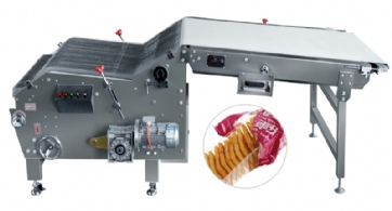 用于饼干烘烤后剥落,并与其它配套设备的过渡输送。能使饼干在进入喷油机前合理冷却,又使部份饼干焦屑出炉筛落。