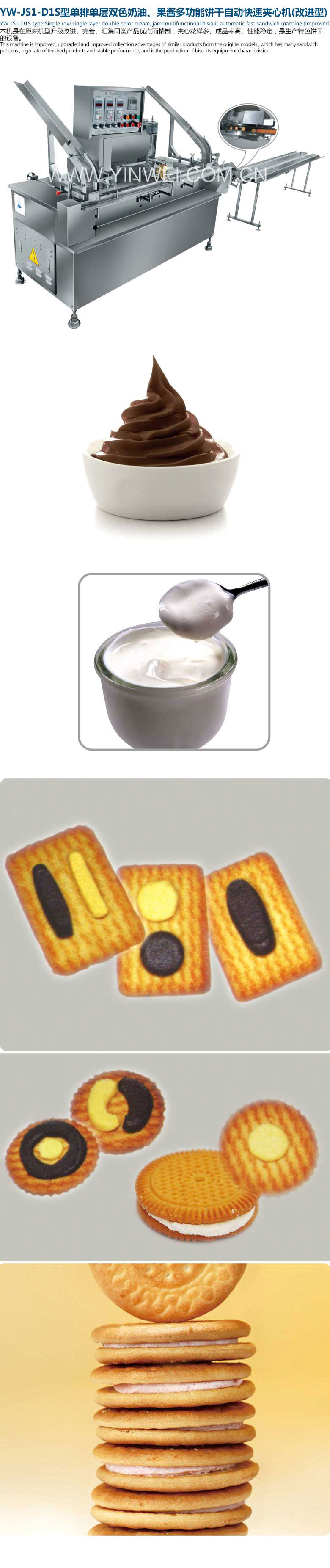 ②光电控制,自动检测缺饼,停机自动关闭给料器,确保不漏馅料,使机器干净; ③联操调速,操作更方便; ④定形链条送饼、生产效率及成品率高; ⑤星轮整理饼干,使饼干排列有序; ⑥星轮转子泵取代传统的齿轮泵供料,提高每块饼干的夹心馅料均匀度,且长时间使用不塞泵; ⑦夹心多样化,功能更齐全,适合果酱、奶油,前后或左右两种颜色或单色夹心; ⑧夹心馅料多样变化,料量调节方便; ⑨自动温度控制,保证夹心馅料恒温; ⑩长、方、圆、椭圆,各种规格的夹心饼干转换品种时,各部位调节快速、方便,整机主要采用不锈钢制造,外形新颖,符合食品卫生要求。 |