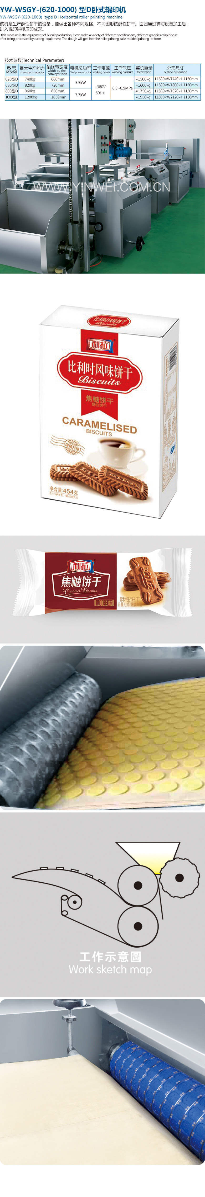 ②Independent control system, can also combine and control with whole machine ③Suitable for hard material and soft material process, with ring canvas belt, improving biscuit quality and forming rate. ④pressure type automatic correction, automatic slack conveying belt, high degree of automation. ⑤Tilting trough, the mold and the canvas can be conveniently and rapidle assembled and disassembled. ⑥Tank equipped with pull rake, ensuring high shaping rate. ⑦Special material mould mowing knife, having long service life. ⑧Sheet metal parts are made of stainless steel materials, in line with food hygiene requirements. |