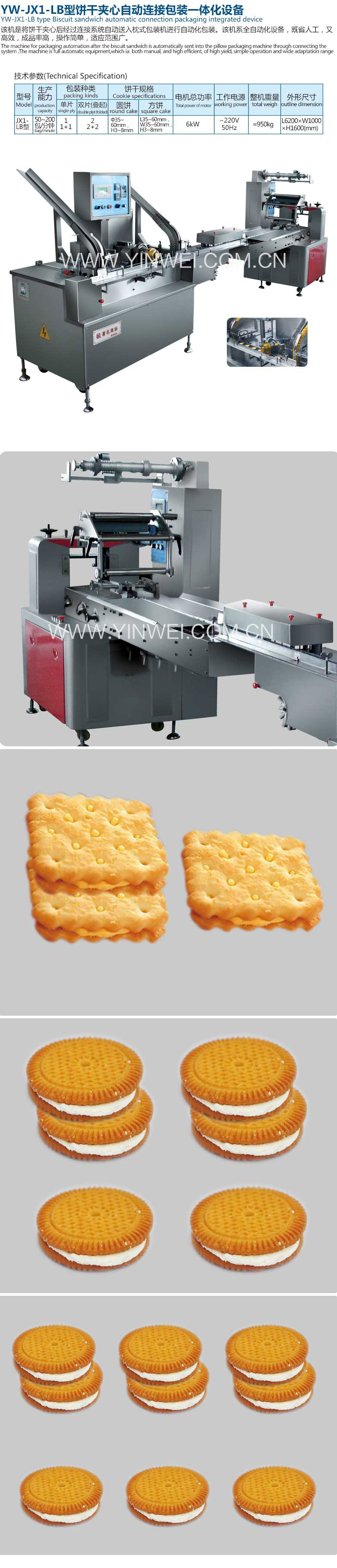 ①Through the connection system, it can realize the automatic connection of biscuit sandwich packaging integration.