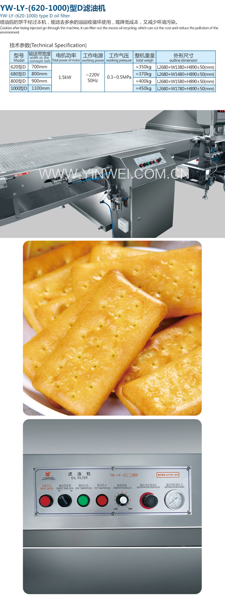 ②Pneumatic automatic slack, automatic correction of conveying belt, high degree of automation. ③The use of stainless steel mesh belt, easy to clean, complying with food hygiene requirements. ④Equipped with stainless steel back to the oil pan, make the recovery of oil back to use. ⑤Stainless machine wall, stainless sheet metal parts, of beautiful appearance and sanitation. |